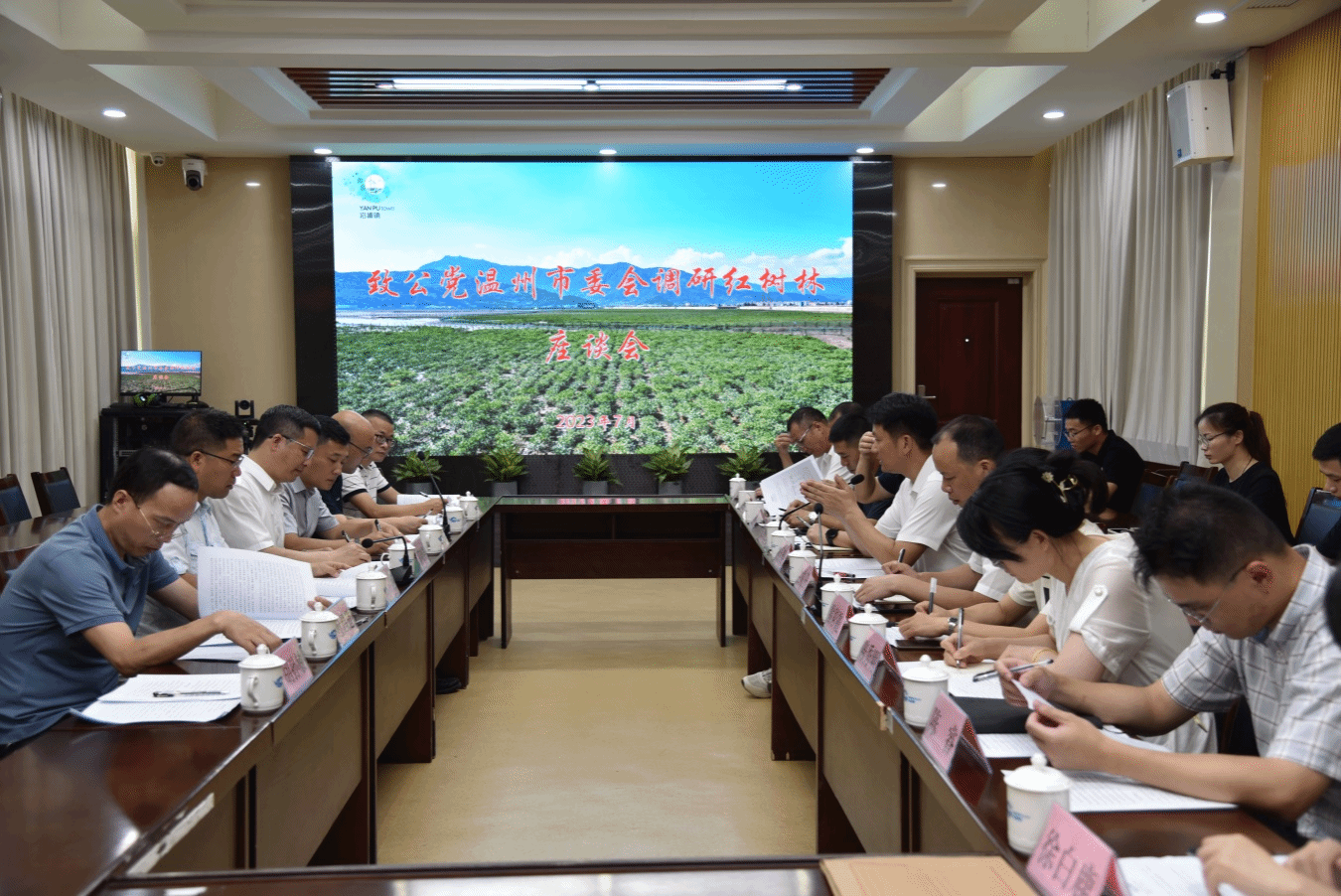 冒着酷暑,调研组一行先后到苍南县沿浦镇、龙港市红树林湿地公园实地查看红树林分布、生长、养护等情况,听取相关负责人的汇报,了解我市红树林资源保护、发展存在的问题。