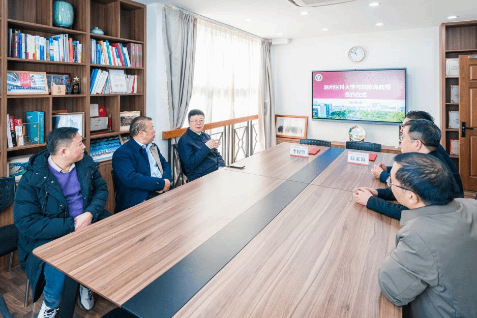 温州医科大学校长李校堃院士、人事处处长楼永良教授、大象传媒