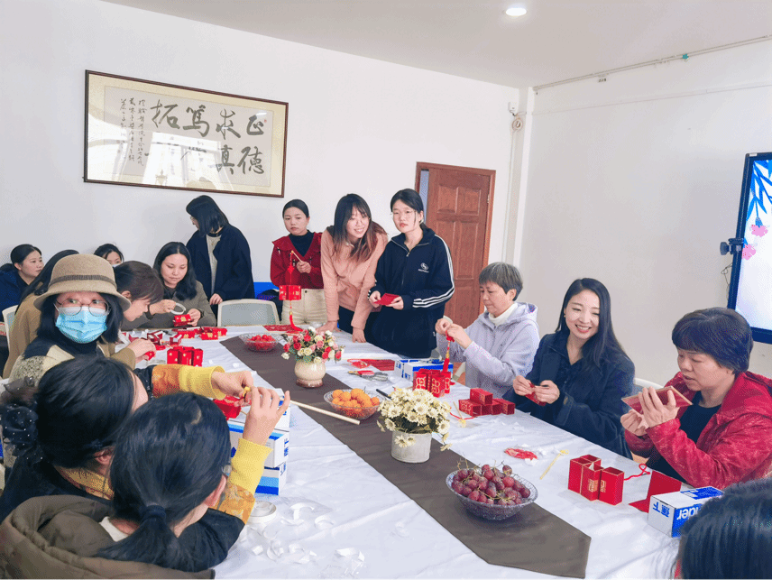 活动室里,佳人们齐聚一堂,围坐一起,在温馨而美好的氛围中,每位佳人按照步骤认真学习,没一会,一个个红包就在她们手中变成了生动的小红灯笼,物尽其用又收获乐趣,它承载着每个人的喜悦,彰显着女性的力量,又点亮了地球这盏环保之灯。