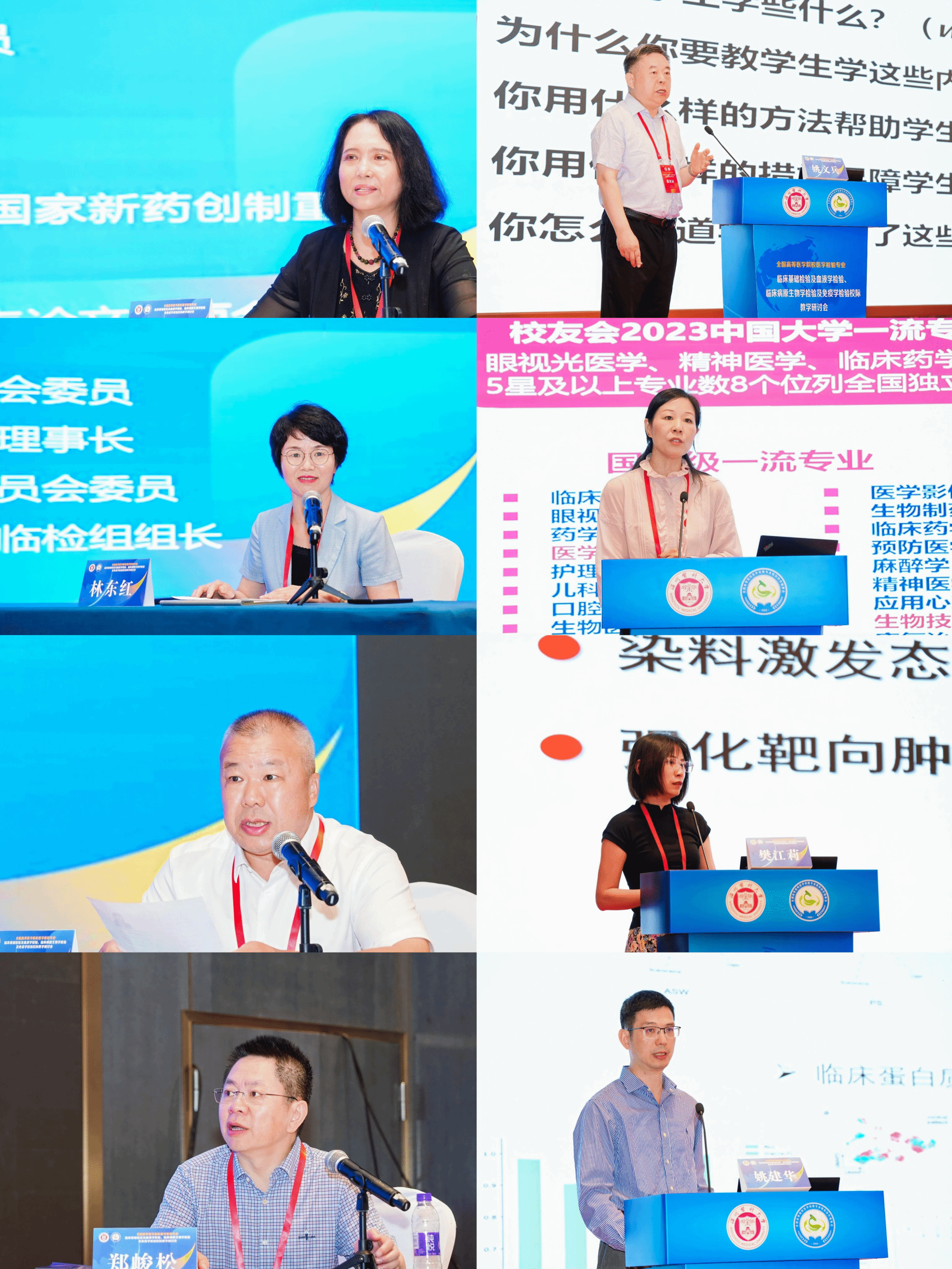 温州医科大学副校长朱雪波教授,教育部高等学校药学类专业教学指导委员会主任委员、中国药科大学原副校长姚文兵教授,国家杰出青年基金、优秀青年基金获得者大连理工大学教授樊江莉教授,腾讯AI实验室AI医疗首席科学家姚建华博士,全国高院医学检验技术专业校际协作会理事长、北华大学夏薇教授,全国高校医学检验专业校际协作会微免学组组长、天津医科大学刘运德教授,全国高等医学院校医学检验校际协作理事会副理事长、福建医科大学林东红教授,全国高等医学院校医学检验校际协作理事会副理事长、中国医科大学郭晓临教授,全国高等医学院校医学检验校际协作理事会副理事长、温州医科大学楼永良教授等嘉宾出席会议。温州医科大学检验医学院(生命科学学院)院长郑晓群主持会议。来自全国各高等医学院校、医疗机构的300余名医学检验界专家、学者、领导及师生代表参加了这次盛会。