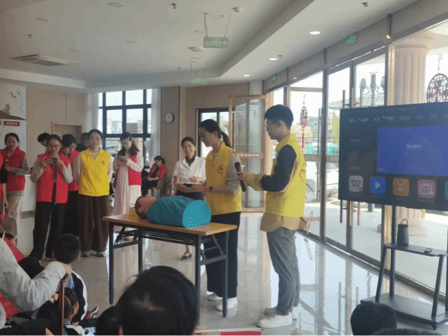 为增强小朋友和老人的安全意识,阳光志愿者开展心肺复苏宣讲活动,科普急救知识,耐心演示急救步骤,并及时指导小朋友掌握正确动作,帮助他们进一步了解和深化知识。