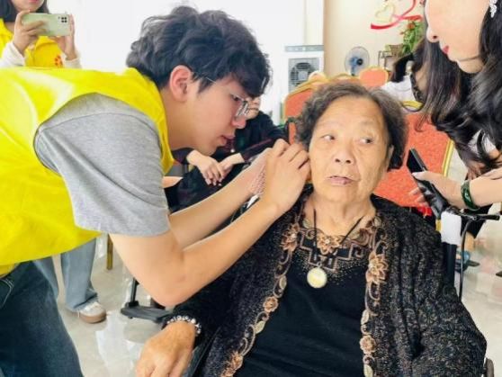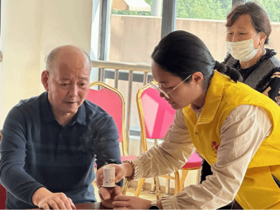 此外,志愿者为老人们带来系列康养服务,如量血压、艾灸,耳健康测试等,科普了针灸的作用与疗效,用心倾听老人们的感受,用温柔的手法、暖心的问候获得了老人们的赞赏。