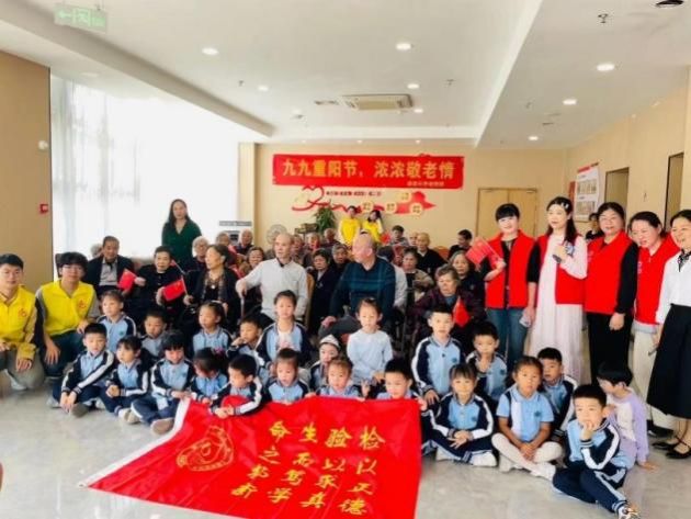 阳光志愿者服务社联合温州大学附属茶山第一实验幼儿园走进温州康乐居养老院,以“大手牵小手”的方式,开展“银龄行动”志愿活动,关爱陪伴老人欢度节日。