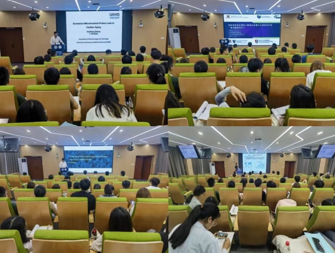 阿肯色大学张会亮教授、香港中文大学王善斌教授、上海交通大学张家毓教授、上海大学呼庆勋教授分别做大会主旨报告,就心血管疾病和心肌衰老过程中的线粒体功能演变和代谢变化的最新研究进行了报告,并同师生互动,对线粒体质子漏和NADPH在心血管疾病检测中的应用展开了深入的探讨。
