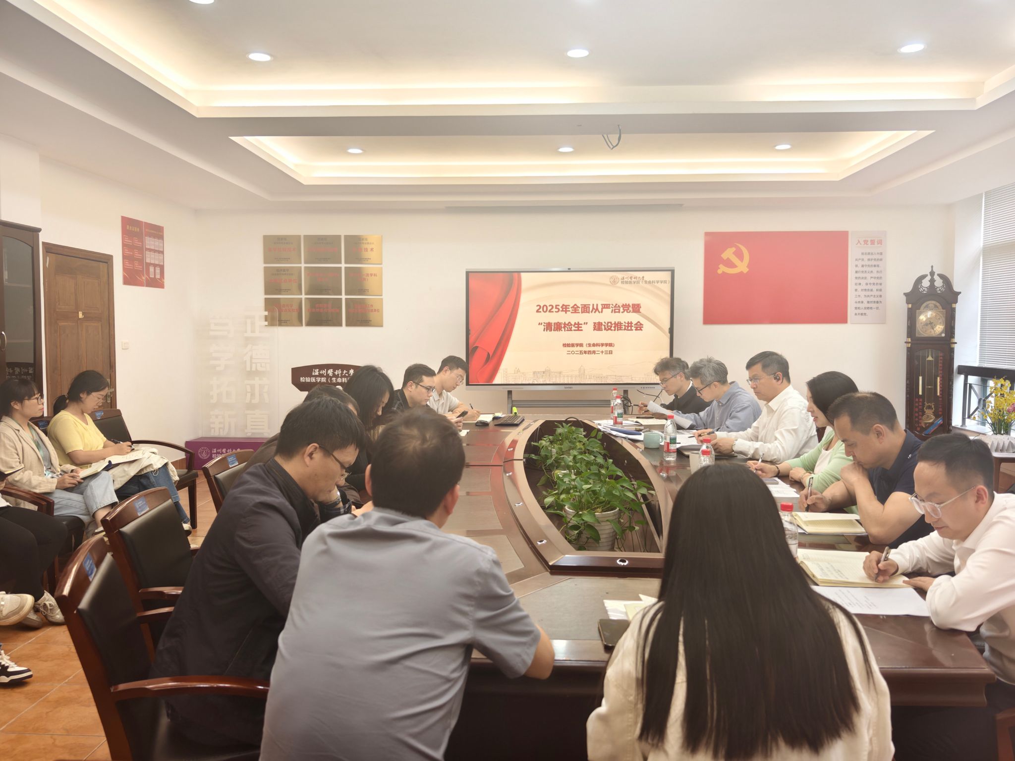 在7A320会议室召开2025年全面从严治党工作会议暨“清廉检生”建设推进会。学院领导班子成员,各系、科室、中心负责人及党支部书记参加会议。