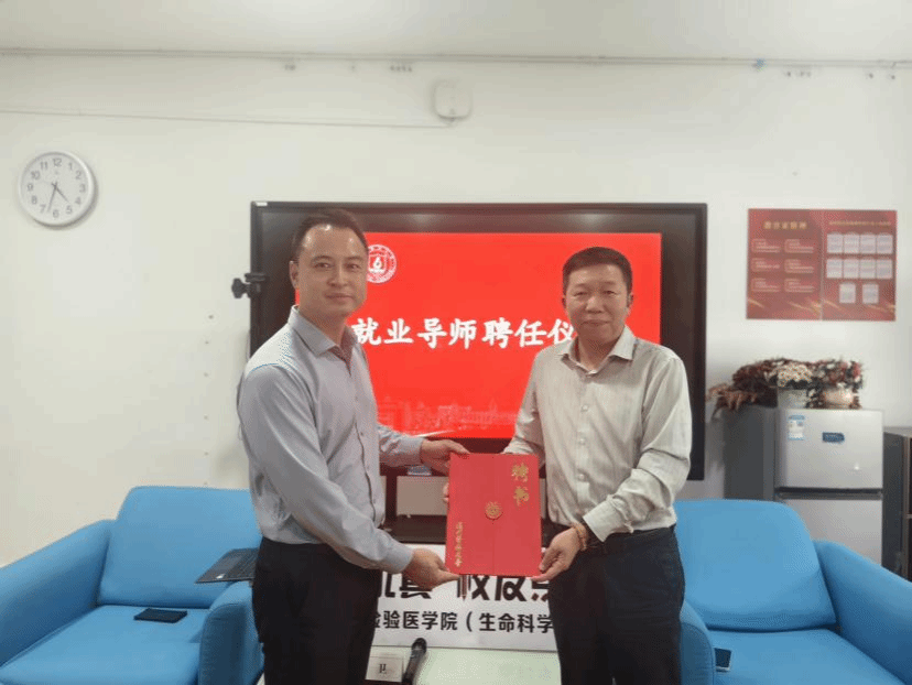 活动中,学院敦请何卫校友为学院就业导师,副院长楼哲丰为其颁发聘书。
