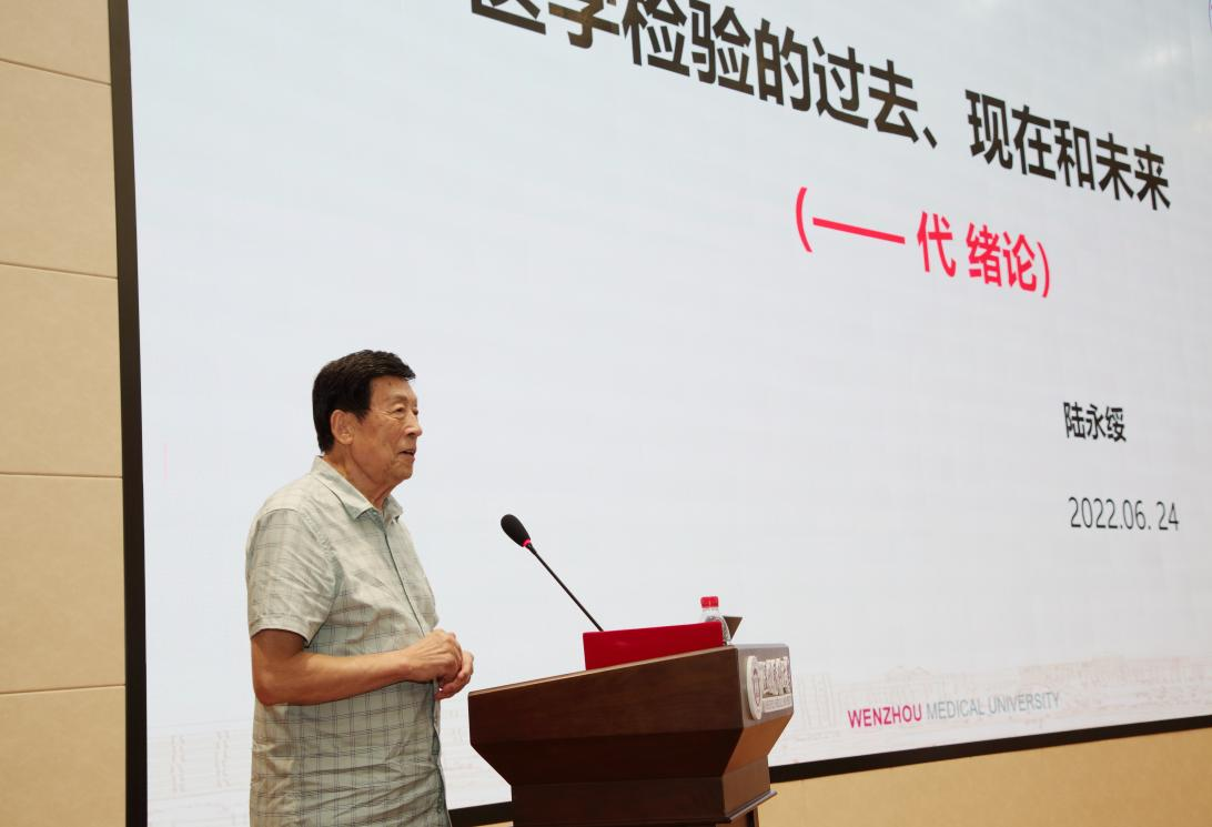 学院医学检验专业创始人陆永绥老师作为检生学院“校友捐课”第1讲暨温州医科大学校友讲坛第25讲主讲人,为学院师生献上了一场源远流长、深刻动人的院史课。陆老师从新冠大背景、温医检验系历史、故事汇、寄语后来人四个方面饱含深情地讲述了医学检验的过去、现在和未来,对学院师生寄予了三个“自强不息”的期许。