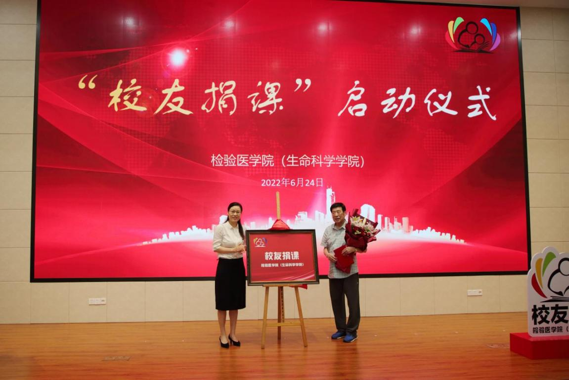 副院长楼哲丰介绍了“校友捐课”项目。为更好地凝聚校友力量,深化“校友—母校”发展共同体,促进学生成长,“校友捐课”项目邀请检验师、科研人员、企业家等不同职业的校友,针对学生实际需求,结合校友专业、职业背景或特长开设多样化课程。