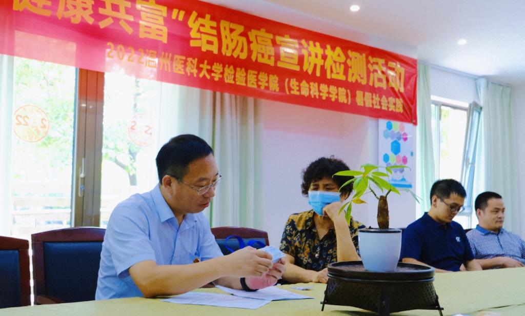 实践团联合卫生检验与检疫系党支部到永中街道养老服务中心为实践队员和社区居民开展结直肠癌筛查赋能讲坛。