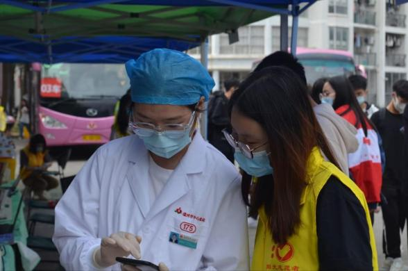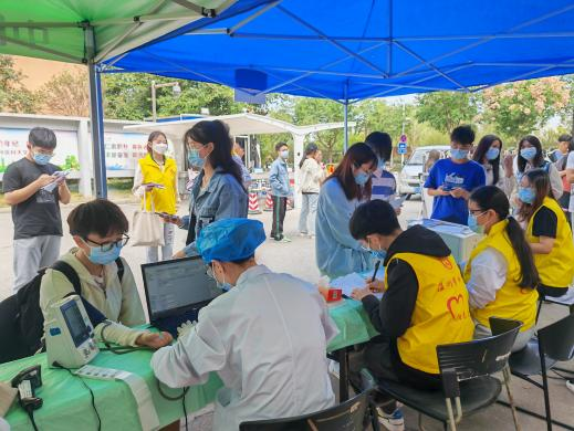 阳光志愿者服务社联合温州市中心血站在桂园食堂门口举办“青春同心跟党走,献血有爱报家国”无偿献血活动。