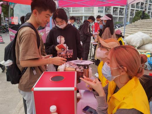 为了给这些“献血勇者”鼓励,阳光志愿者服务社准备了玩偶、积木等纪念品,以知识问答的形式发起抽奖,与同学们进行有益、有趣的互动。