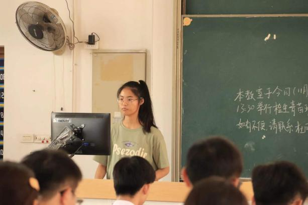 在7Aj201举行青苗班结业仪式,22级辅导员金智博老师、院团委副书记(学生)王安民同学和院团委办公室主任张凯豪同学参加此次活动。