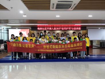 阳光志愿者服务社及益耳密码志愿服务队志愿者走进梅泉社区,开展儿童友好“益耳护耳”公益志愿活动,向小朋友们科普护耳知识和常用手语。
