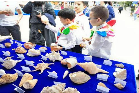 志愿者带领孩子们一起聆听形状各异海螺的声音,带领孩子们探索海洋生物的神奇,激起他们对海洋生物多样性以及保护环境的兴趣。