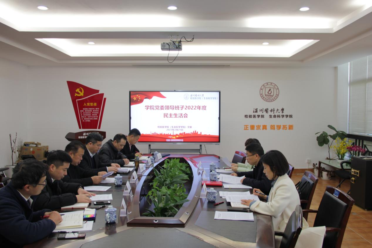 2月21日下午,学院党委领导班子在7A320会议室召开2022年度民主生活会。校党委委员、组织部部长章成斌到会指导,校党委宣传部副部长叶晓丽、党委组织部综合科科长王洁陪同参会。学院党委班子成员参加会议,执行院长郑晓群列席会议。会议由校人事处处长楼永良主持。