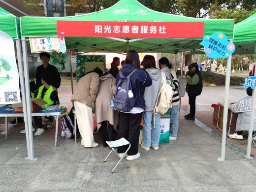 志愿者在校同德楼广场举行“爱耳护耳我最懂”和“让爱发声”志愿服务活动,通过知识问答、体验聋哑人生活等学生喜闻乐见的方式科普与传播听力健康知识,达到提升科学护耳理念。