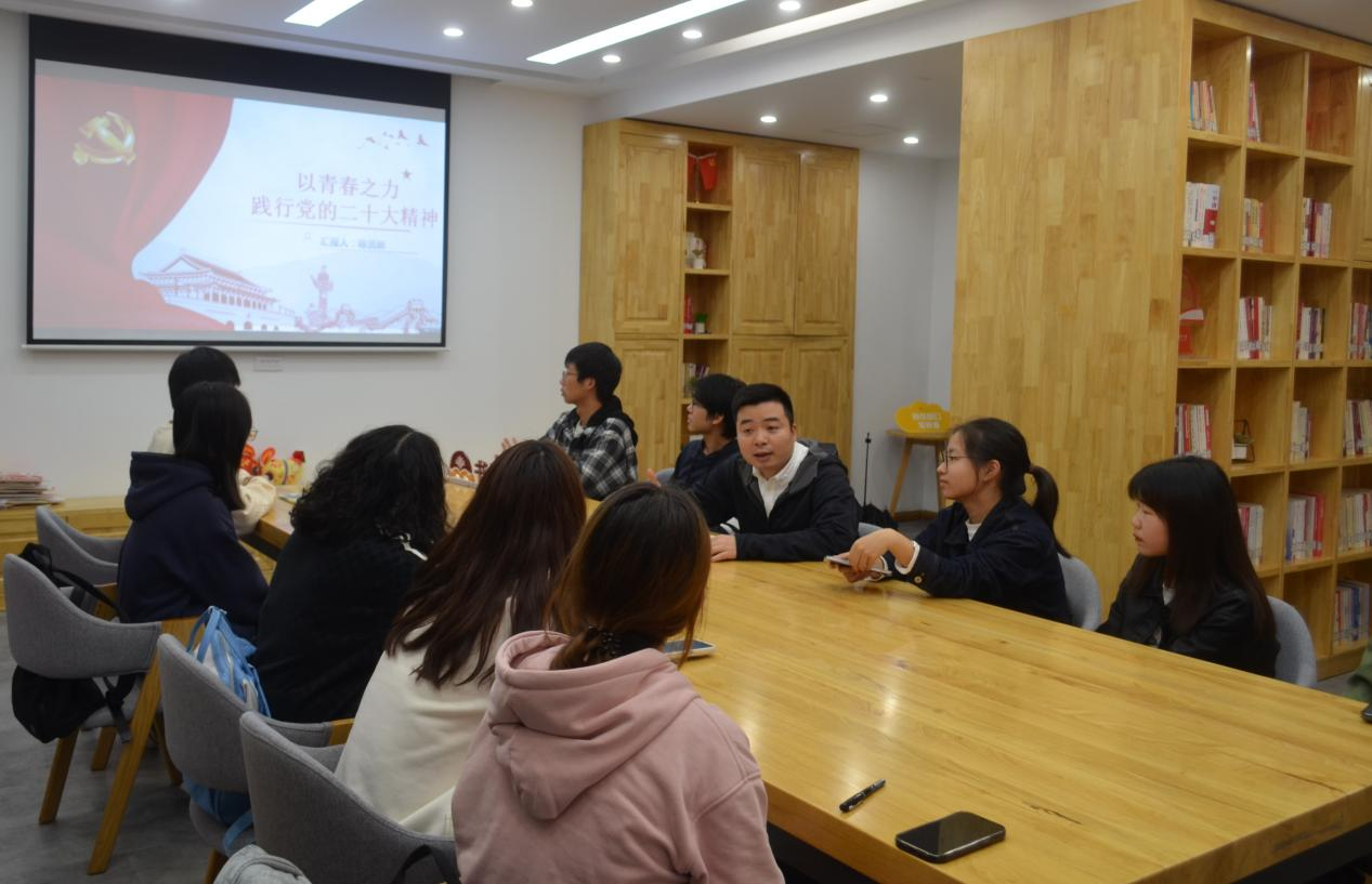 在社区12号楼的“党员之家”开展主题为“以青春之力,践行党的二十大精神”的主题座谈会,院党委副书记陈贤新和来自22级各专业的学生代表参会。