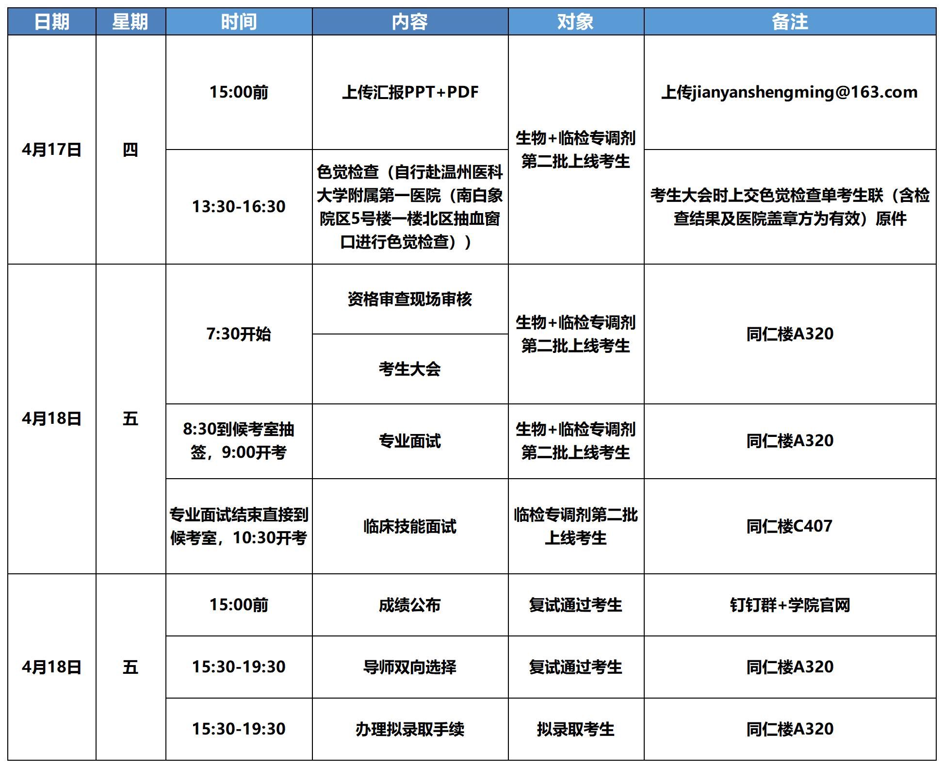 研究生复试工作是研究生招生工作的重要组成部分,复试是保证录取质量的关键环节。根据《温州医科大学2025年硕士研究生复试录取工作方案》文件精神,现将硕士研究生(生物学学术型、临床检验诊断学专业型)第二批考生调剂复试安排情况通如下: