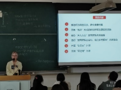 坚定目标,砥砺前行。随后,助弱行动部部长陈信晓与“红树林”项目负责同学赵妍分别介绍了“益耳密码”品牌活动与“红树林”项目。“益耳”品牌活动依托市红会“益耳密码”志愿服务队,联动附属医院及社会各界,着力提升听障人士就医体验,科普用耳、护耳等益耳知识和医学手语,为听障弱势群体提供精准志愿服务。“红树林”项目旨在响应温州“蓝碳”峰会号召,通过绿色宣讲与扩大种植等方法保护红树林资源,实现红树林面积增长与水域环境改善。