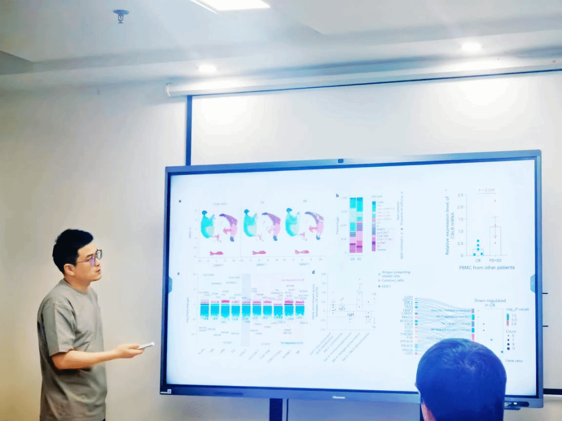 邓文海博士在讲座中回顾了新型嵌合抗原受体工程化NK(CAR-NK)细胞疗法的研发历程,分享了四个方面的工作:1)建立新型假包膜慢病毒技术平台实现CAR-NK细胞的高效制备;2)开展脐带血来源靶向CD19的CAR-NK细胞治疗复发难治性B细胞淋巴瘤的临床试验,具体分析了供者NK细胞以及宿主自身外周血细胞单细胞测序结果与临床疗效的相关性;3)CD19和CD70双靶向CAR-NK细胞疗法的设计与功能验证;4)CAR-NK细胞的功能标记物的发现,以及与抗肿瘤效能关联机制的研究。这些研究结果为新型细胞治疗技术的开发提供了新思路。