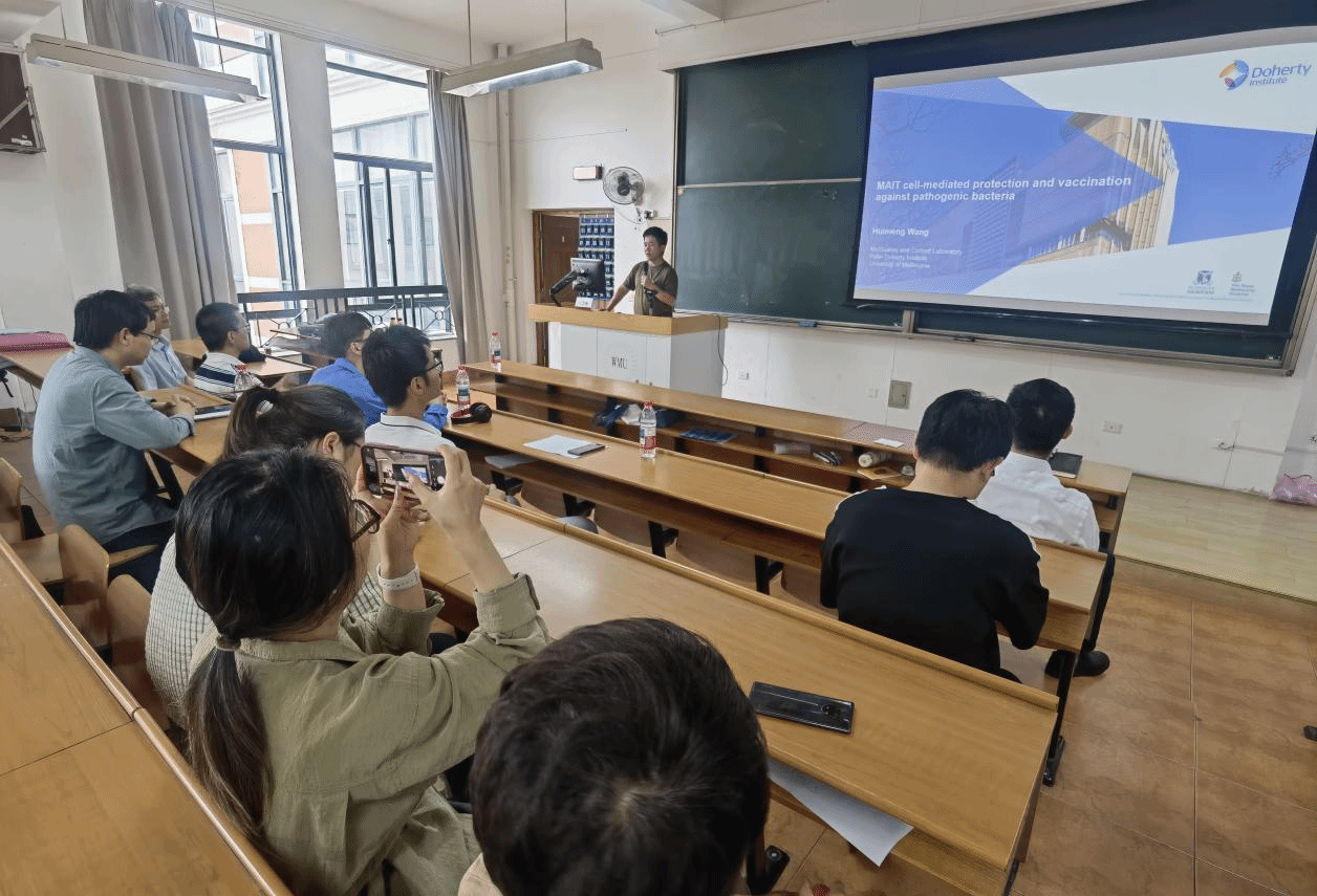 做题为《MAIT细胞在感染免疫中的前沿进展》的求真讲座,学院副院长黄海山主持。