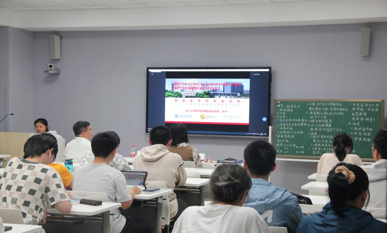 4月21日下午,第六场“走进检验”系列讲座在茶山校区同济楼智慧教室举行。中国医师协会检验医师分会青年委员会副主任委员、中华医学会检验医学分会委员、浙江大学医学院附属邵逸夫医院检验科主任张钧教授与2022级临床医学(检验医师培养试验班)的同学们进行了交流学习。本次讲座由检验医学院(生命科学学院)执行院长郑晓群教授主持,主讲人张钧教授与同学们探讨检验的价值体现、标准化和个体化检验诊断、技术平台建设、研究和教学的功能、科室的学科建设及方向等相关内容。