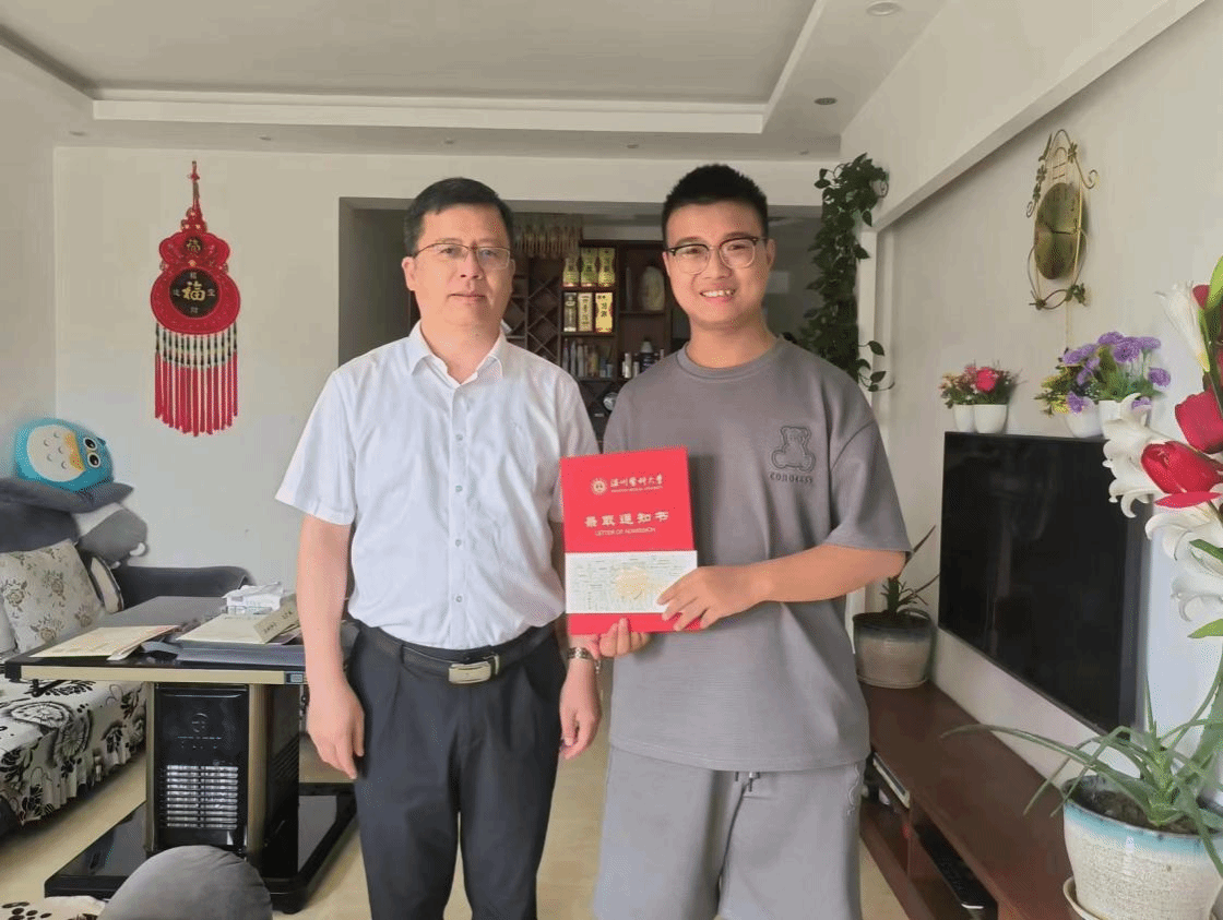 金雀衔佳报,整装待新程。对于郑晓群执行院长亲赴贵州送达的录取通知书,杨旭东同学感到惊喜与激动,在谈到对临床医学(检验医师培养试验班)这一专业的选择,他表示:“我从小就对医生这个职业充满了向往,尤其在新冠疫期间,我看到如此的多的医护人员前赴后继,凭借忘我的精神与精湛的医术为全国人民铸造了一道强大厚实的防疫之墙,我决心投入到这一神圣的行业,我的选择也获得了家人的全力支持。我相信,这不仅仅是一次专业选择,也是一次梦想的选择。对于未来的校园生活,我充满了期待。”在此基础上,他也谈到了未来的学业规划,“希望我未来不仅成为一名救死扶伤的检验医师,也能在科研方面做出一定的成就。”