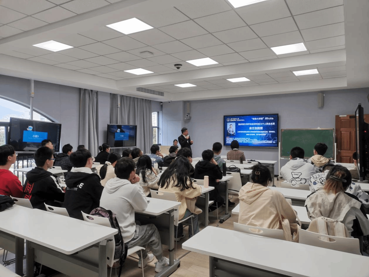 11月30日下午,本学期第三场“检验大讲堂”系列讲座在茶山校区同济楼智慧教室 6A302举行。上海市肺科医院(同济大学附属肺科医院)检验科主任余方友教授与2022 级临床医学(检验医师培养试验班)的同学们深入交流,就个人学习与科研经历,微生物学在医疗行业中的运用,以及未来个人职业发展等方面进行了讨论。本次活动由大象传媒