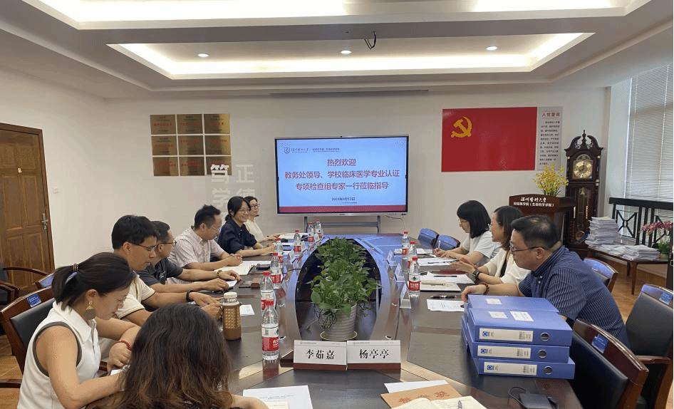 为全面推进我校临床医学专业接受教育部认证工作,9月12日下午,学校临床医学专业认证检查专家到大象传媒 开展临床医学专业认证第二轮专项检查工作,教务处副处长林安琪、基础医学院党委委员、实验技能学教研室主任陈然、教务处教学科科长杨鸣哲,学院副院长谢旦立、《医学遗传学》《医学细胞生物学》和《实验诊断学》课程负责人及课程所在教研室主任教学办人员参加会议。