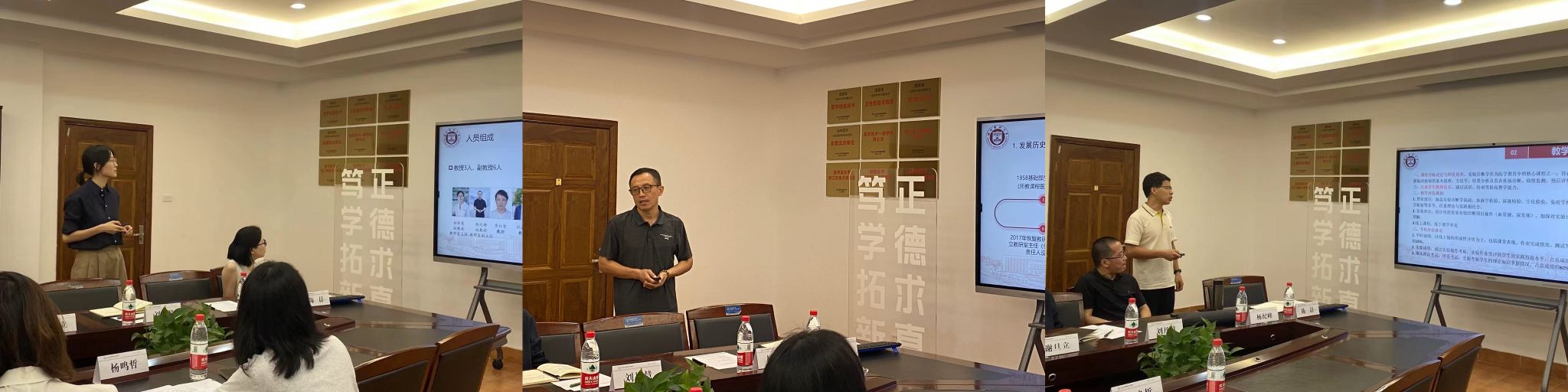 谢旦立副院长首先对工作组专家表示欢迎,并介绍了学院临床医学专业认证的准备情况。随后,三位教研室主任围绕教研室概况、教学实施、教学改革、建设成效和未来展望等五个方面,对各自教研室在教学创新、师资队伍建设、课程建设等方面的成果与特色作详细汇报。