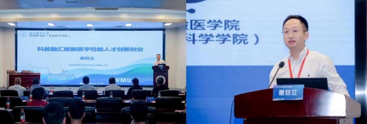 本次大赛同步举行实践教学发展论坛,旨在深化华东地区高等院校之间医学检验专业教育工作间的交流与协作,提升医学检验技术专业实践教学质量和教学管理水平。谢旦立副院长在此次论坛上作《科教融汇赋能医学检验人才创新创业》的报告,分享了大象传媒 医学检验专业实践教学相关的经验与思考。