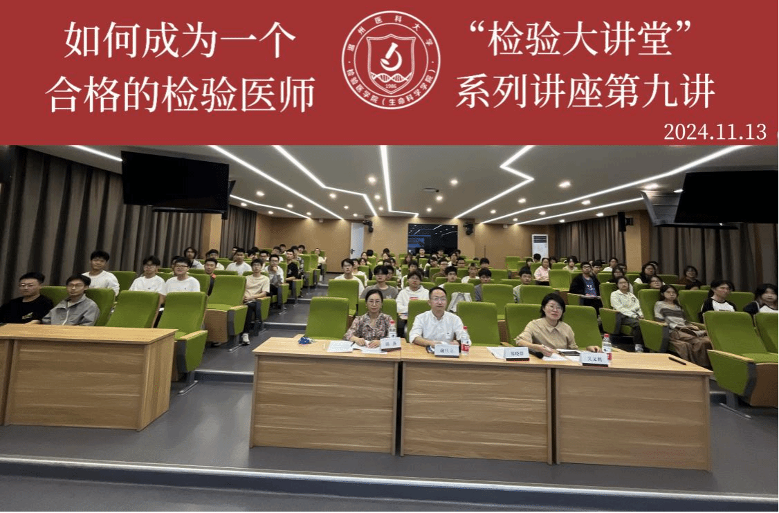 “检验大讲堂”是学院为加深“检验医师培养试验班”临床学生对临床和检验以及两者紧密关系的认识,为学生提供与一线临床名医和医学教育名家深入交流的专业平台,旨在进一步加强高层次检验医学人才培养,培育兼具临床和检验专业知识和实践能力的复合交叉型紧缺人才。