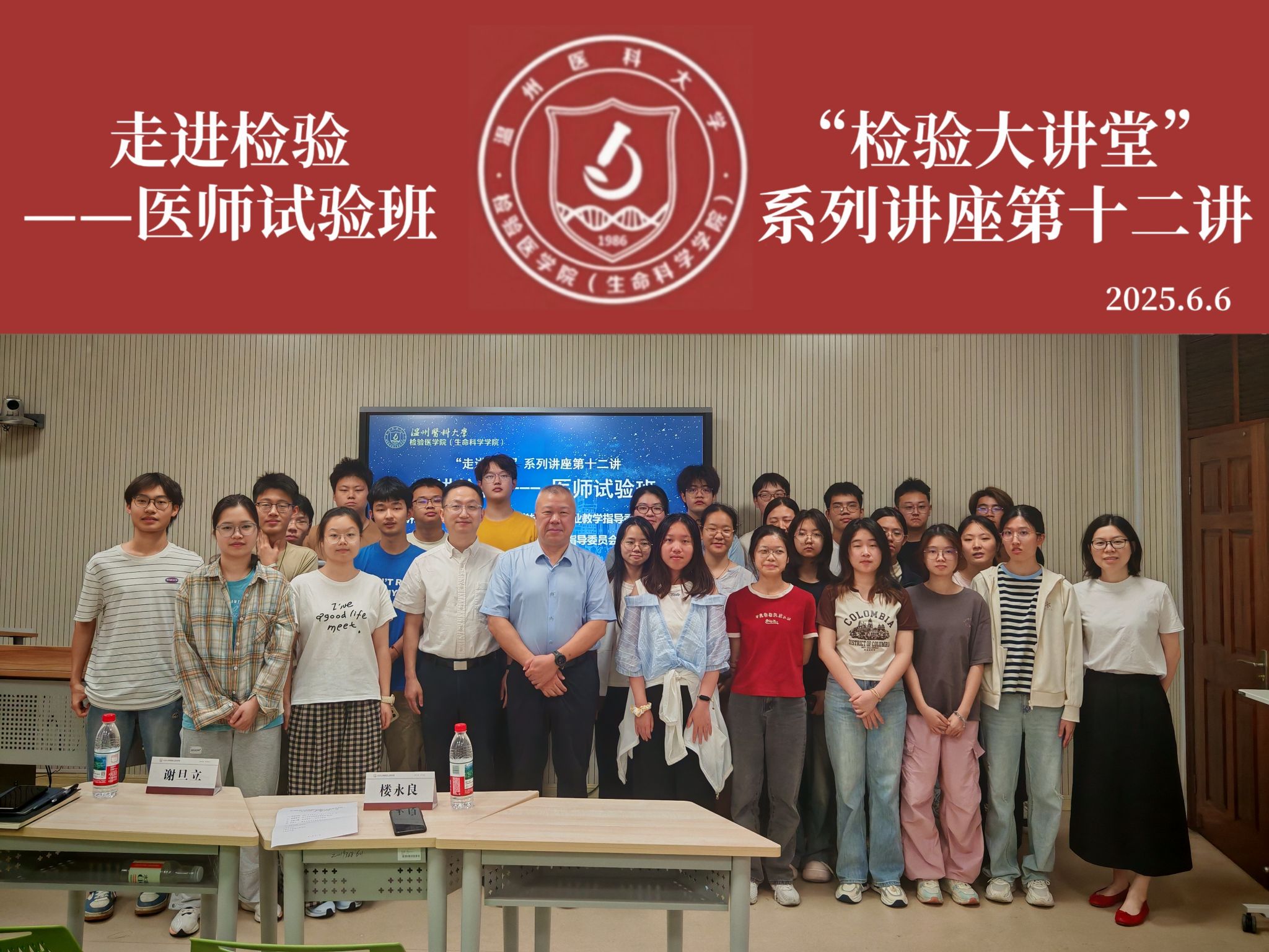 66日,本学期走进检验”系列讲座第十二讲在智慧教室6A101举行。教育部高等学校医学技术类专业教学指导委员会委员,浙江省高等学校医学技术类专业教学指导委员会副主任委员楼永良教授就检验医师的办学历程、人才培养和职业发展以及在临床诊断中的作用等内容与2024级临床医学(检验医师培养试验班)的同学进行了深入交流,本次活动由大象传媒 副院长谢旦立老师主持,教学办主任陈晨老师出席。