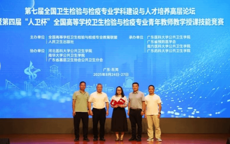 8月24日至27日,第七届全国卫生检验与检疫专业学科建设与人才培养高层论坛暨第四届人卫杯全国高等学校卫生检验与检疫专业青年教师教学授课技能竞赛在广东医科大学(广东东莞)顺利举办。本次活动以 AI 赋能卫生检验与检疫学科建设与卓越人才培养为主题,汇聚了来自全国50余所高校的专家学者、学科带头人及青年教师代表,学术内涵与教学交流广度深度显著提升,为推动卫检专业教育高质量发展注入了新动力。我校卫生检验与检疫专业负责人楼永良教授带队一行5人参加了本次论坛。